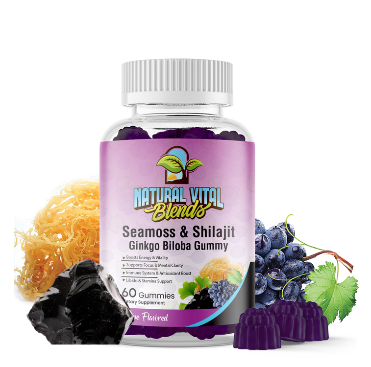 These gummies support energy, stamina, cognitive function, immune health, and overall vitality with a powerful blend of Sea Moss, Shilajit, and Ginkgo Biloba.